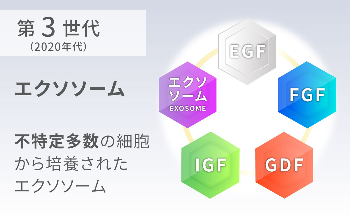 EGFやFGFといった「成長因子」から最近話題の「エクソソーム」まで、すべては幹細胞が分泌する生理活性物質です。